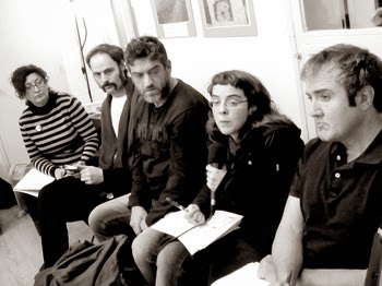 Como ponentes de la charla, participaron Endika Zulueta, abogado penalista vinculado a los movimientos sociales, Sara López, de la comisión de legal de la Acampada Sol (LegalSol), Raúl Capín, fotoperiodista, Félix Estaire, dramaturgo y autor de la obra de teatro El Antidisturbios y Elena Ortega, presidenta de la Asociación Madres Contra la Represión y madre de Alfon, detenido en la Huelga General del #14N de 2013.