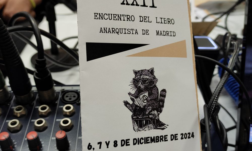 Aquí os traemos la cobertura radiofónica del XXII Encuentro del Libro Anarquista de Madrid, que se celebró los días 6, 7 y 8 de diciembre 2024 en la Escuela Popular ‘La Prospe’. Una cobertura de radios libres en la que participaron Steph (Tomalatierra), Raimundo (Onda Expansiva Burgos), Profesor Arkadio (La Linterna de Diógenes)y Barrio Canino (Ágora Sol Radio) con entrevistas a la … Sigue leyendo vol.319 – Cobertura radiofónica del XXII Encuentro del Libro Anarquista de Madrid