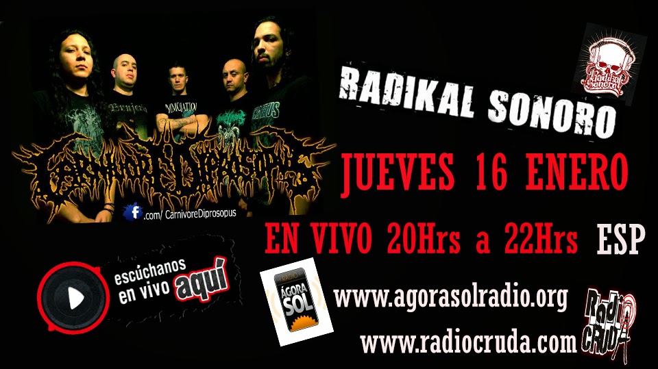 Radikal Sonoro Episodio 7 , Hoy entrevistamos a la banda Brutal Death Metal CARNIVORE DIPROSOPUS , Apoyando la escena Under Latinoamericana y Española , Punk / Hardcore / Metal / Ska / Rock y mucho más. Jueves en Vivo 20Hrs a 22Hrs (Hora España)