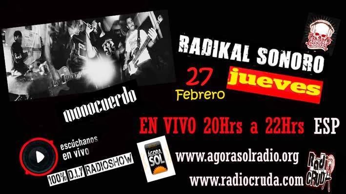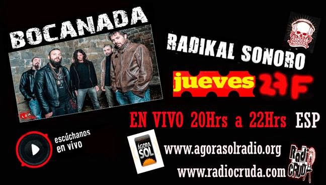 Radikal Sonoro Episodio # 13 Programa semanal de Radikal Sonoro en Agora Sol Radio , En el programa entrevistamos via telefonica a la banda BOCANADA y nos visitaron a los estudios los MONOCUERDO Apoyando la escena Under Latinoamericana y Española (Ska /Punk / . Jueves en Vivo 20Hrs a 22Hrs (Hora España)