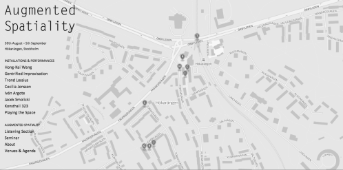 El proyecto en sí está distribuido por diferentes espacios públicos y locales del barrio de Hökarängen, evitando así una recepción expositiva normal. En «Augmented Spatiality» hay diversos proyectos que abordan la relación entre lo sonoro y el espacio público, por artistas como Hong-Kai Wang, Trond Lossius, Iván Argóte, Cecilia Jonsson, Konsthall 323, Playing the Space, y una Gentrified Improvisation (improvisación gentrificada) colectiva, así como un seminario.