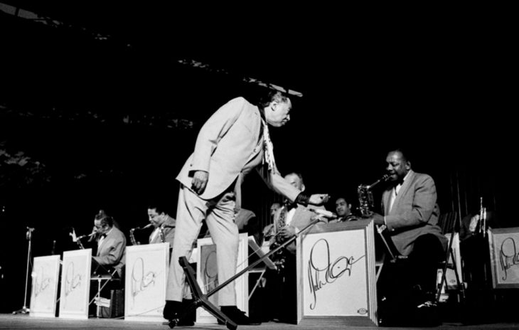 (Ellington: piano; Ray Nance: corneta; Cootie Williams, Cat Anderson, Roy Burrowes: trompetas; Lawrence Brown, Buster Cooper, Chuck Connors: trombones; Jimmy Hamilton: clarinete, saxo tenor; Russell Procope: clarinete, saxo alto; Johnny Hodges: saxo alto; Paul Gonsalves: saxo tenor; Harry Carney: saxo barítono, clarinete bajo; Ernie Shepard: contrabajo; Sam Woodyard: batería) - Boogaloo Joe Jones: What It Is (1971) 7:02